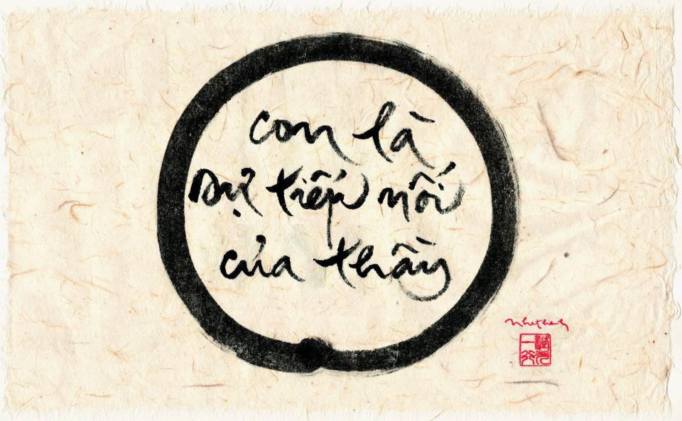Ở Làng Mai, chúng ta không nói “Mừng ngày sinh nhật” mà nói “Mừng ngày tiếp nối” (Continuation Day). Tiếp nối cái gì? Và ai tiếp nối ai? Hôm nay chúng ta quán chiếu về sự tiếp nối của Thầy trong Thầy và trong các con của Thầy, xuất sĩ cũng như cư sĩ. Các con tiếp nối Thầy nghĩa là sao? Sự tiếp nối có hai phần, nơi thân tâm mình và nơi thân tâm những người được tiếp nhận những gì mình truyền trao. Bụt có dạy về trao truyền như sau: người trao truyền, người nhận trao truyền và vật được trao truyền là một. Tam luân không tịch. Không cóchủ thể trao truyền, không có người nhận trao truyền, chỉ có sự trao truyền, thế thôi.