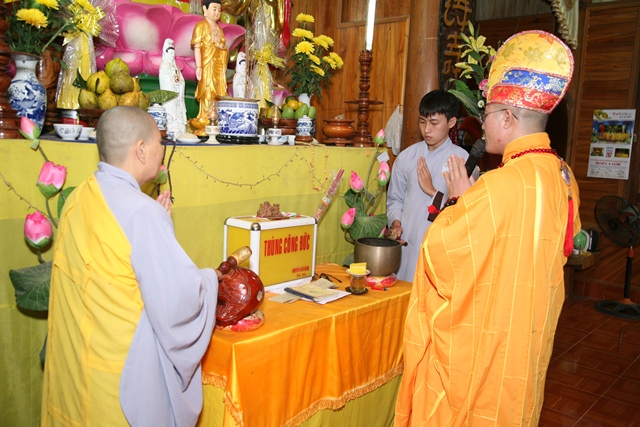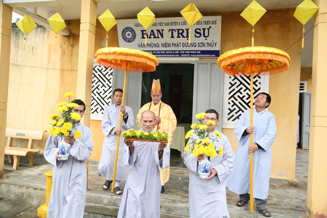 Quang lâm chứng minh và cử hành buổi lễ có Đại đức Thích Tâm Phương, Ủy viên BTS GHPGVN tỉnh Thừa Thiên Huế, Trưởng Ban Trị sự GHPGVN huyện A Lưới; Sư cô Thích Nữ Diệu Trung, Phó Trưởng BTS, cùng quý Đạo hữu Ủy viên BTS, các Ban Hộ tự và đông đảo Phật tử thập phương thiện tín tham dự.
