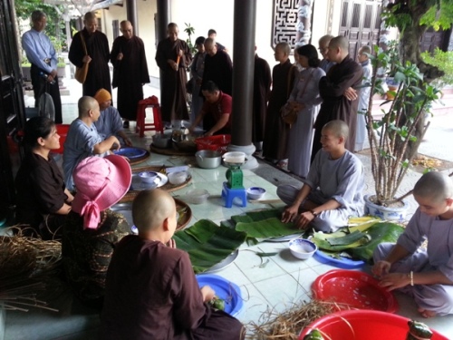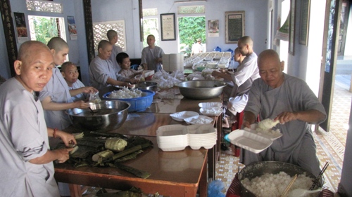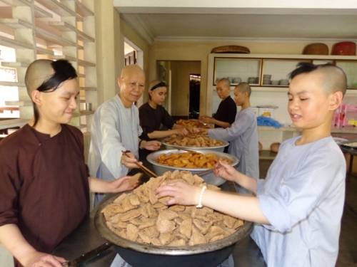 Ni trưởng TN. Như Minh đang hướng dẫn Ni chúng làm bếp