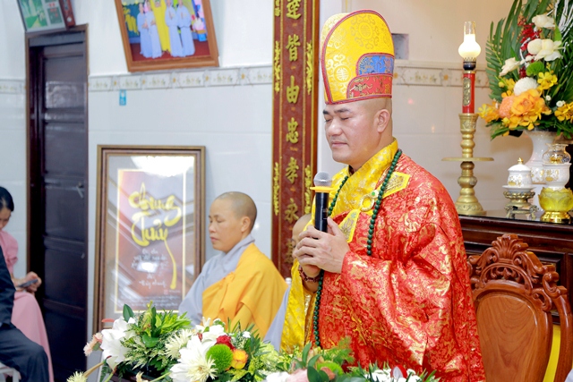 Trong buổi lễ, Đại đức Thích Tâm Phương đã ban đạo từ. Các ngài đã giải thích sâu sắc về ý nghĩa của đôi nhẫn cưới và khuyên dạy đôi vợ chồng trẻ về 5 bổn phận căn bản của gia đình theo kinh Thiện Sanh.