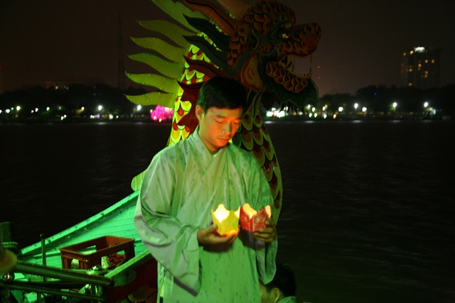 Sau đó, Đại đức Thích Tâm Phương đã làm lễ quy y cho các loài thủy tộc, phóng sanh và thả hoa đăng trên dòng sông Hương thơ mộng của Huế.