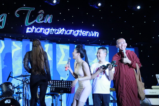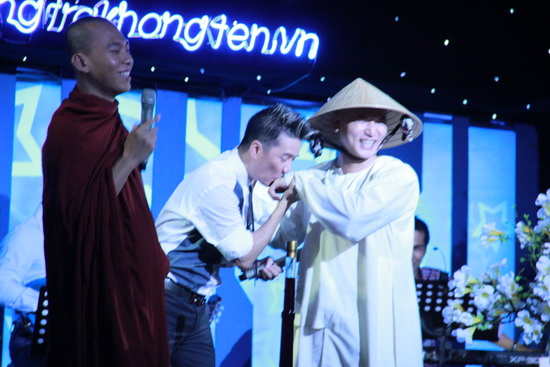 Thậm chí, chính hai nhà sư đã "đòi" Đàm Vĩnh Hưng thực hiện lời hứa ngay trên sân khấu.