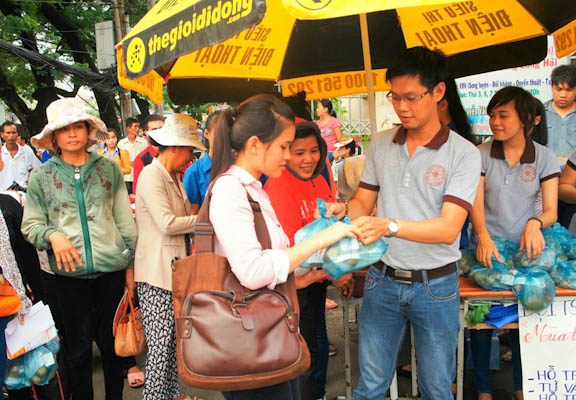 Xin giới thiệu hình ảnh của buổi phát cơm tiếp sức mùa thi của Hội: