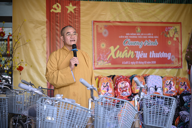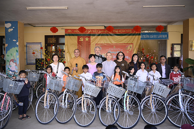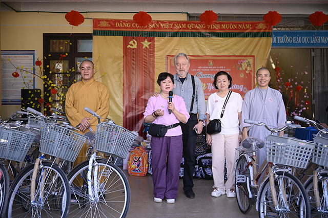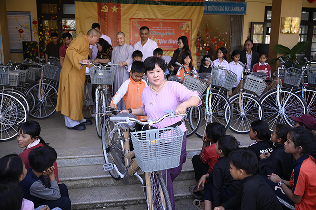 nhân dịp, tết nguyên đán, trị sự, thành phố, phật tử, hảo tâm, xe đạp, học sinh, hoàn cảnh, khó khăn, tiểu học, a lưới