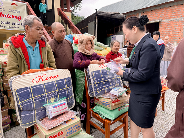 phái đoàn, khu vực, ảnh hưởng, nhu yếu phẩm, thuốc men, thiết yếu, thiệt hại, lắng nghe, tâm tư, bà con, khó khăn, kịp thời, hỗ trợ, thời gian