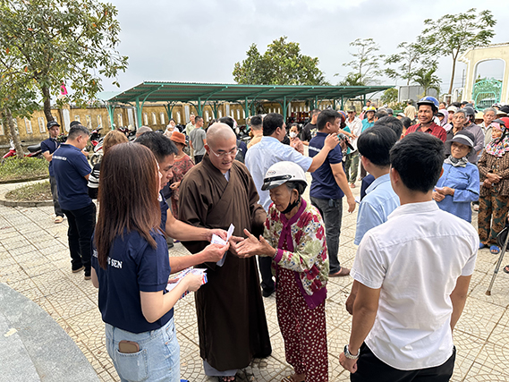 Phái đoàn từ thiện do Đại đức Thích Tâm Phương làm trưởng đoàn, đã trực tiếp về tại các vùng chịu thiệt hại nặng nề, để thay mặt cho Thượng toạ Thích Pháp Hoà trao gửi và chia sẻ khó khăn cùng bà con nhân dân.