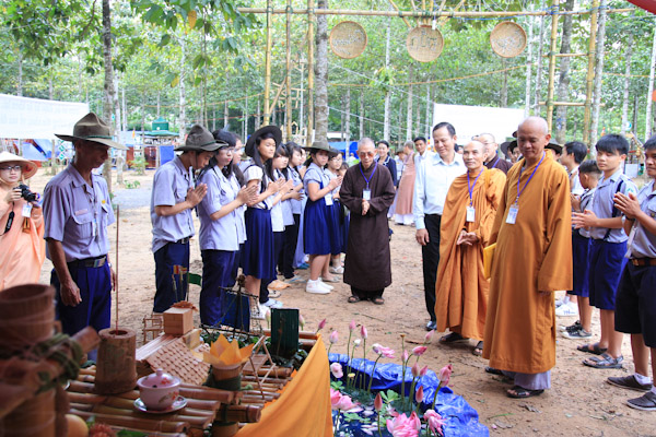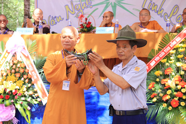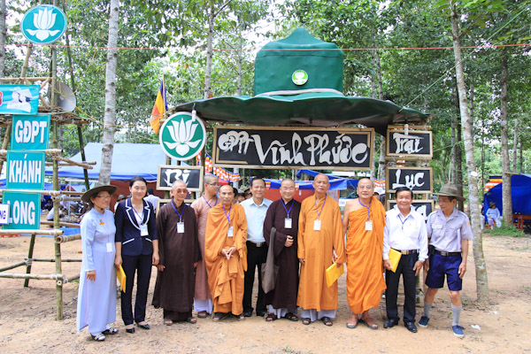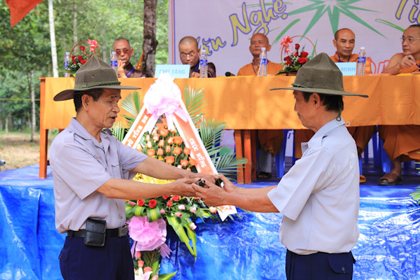 Chư tôn đức và quan khách chính quyền tặng hoa chúc mừng hội trại