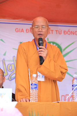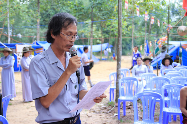 HT. Cấp Tấn - Tâm Tráng Nguyễn Văn Giỏi - Trưởng Phân ban GĐPT tỉnh Đồng Nai, Trại trưởng trại Lục Hòa VI phát biểu khai mạc