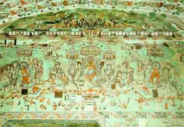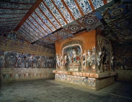 Phía trong hang là cung điện nghệ thuật kết hợp kiến trúc cổ, bích họa và tượng nặn. Trong quá trình xây dựng hang, nhân dân các triều đại đã nặn rất nhiều tượng phật trong hang và vẽ lên đó một loạt bích họa. Trải qua nhiều sự đổi thay của lịch sử và bị con người phá hủy, đến nay hang Mạc Cao vẫn còn giữ được gần 500 hang động, bảo tồn khoangg 50.000 km2 bích họa và hơn 2000 pho tượng phật. Tượng Phật ở hang Mạc Cao có muôn hình muôn kiểu, với các biểu hiện của mỗi pho tượng khác nhau. Bích họa của Hang Mạc Cao nếu nối lại với nhau có thể tạo thành một bức tranh dài gần 30km. Những bức bích họa đều có nội dung kể về sự tích Phật giáo, các buổi giảng kinh, thuyết pháp, trong đó có rất nhiều hình ảnh “phi thiên”. Các học giả Phương Tây coi bích họa Đôn Hoàng là “viện bảo tàng trên vách tường”, phản ánh sinh hoạt của xã hội cổ đại và trung đại từ thế kỷ thứ 4 đến 14. Ngoài tượng Phật còn có tượng vũ nữ, tượng ca kỹ gảy đàn tì bà với một tư thế rất đặc biệt là gảy đàn từ phía sau gáy.