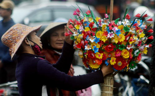 Người dân chọn hoa giấy