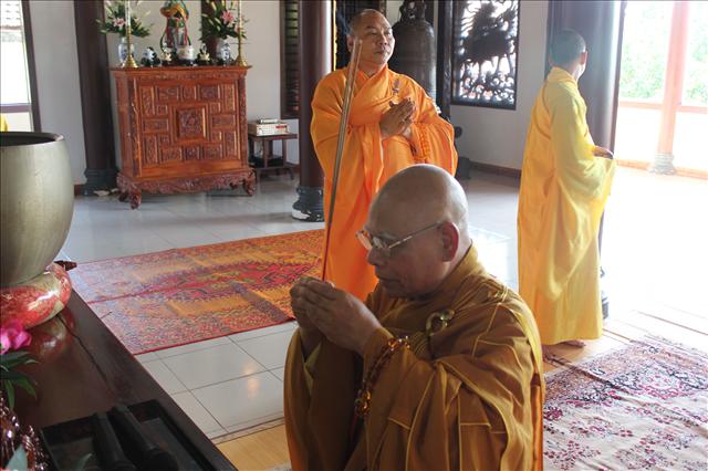 Hòa thượng Thích Chơn Hương niêm hương bạch Phật