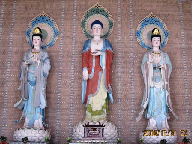 HỎI: Gia đình tôi thờ Phật, bộ Di Đà Tam Tôn gồm Phật A Di Đà, Bồ-tát Quan Âm, Bồ-tát Thế Chí, cả ba pho đều là tượng đứng. Hôm vừa rồi có mấy người bạn đến chơi và góp ý không nên thờ tượng đứng tại tư gia mà nên thờ tượng ngồi. Vì lẽ thờ tượng đứng thì các Ngài sẽ đi mà không ở lại hộ trì như tượng ngồi. Không biết họ nói như vậy có đúng không? Khi thờ Phật, có nhất thiết là phải đem tượng lên chùa nhờ chú nguyện và thỉnh chư Tăng Ni về nhà an vị Phật?