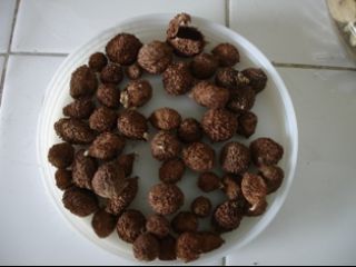 Quả thu hái vào mùa thu, bóc bỏ vỏ, phơi hay sấy khô.