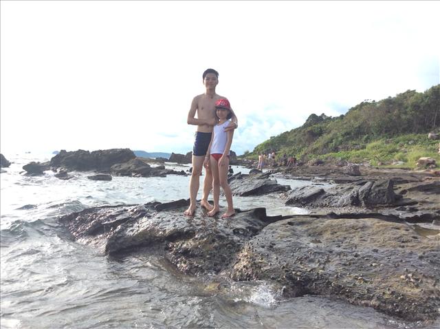 Sau một đêm say giấc, đúng 6 giờ sáng, tôi đang say ngủ thì Sư Phụ đánh thức “Dậy tắm biển con ơi” không một chút do dự, tôi lao vào đánh răng rửa mặt, thay đồ rồi cùng Sư Phụ chạy xe máy đến bãi biển. “Chao ôi răng mà nước trong rứa, răng mà biển đẹp lạ” Tiếng Sư Phụ vang lên khi thấy bãi tắm ở đây.