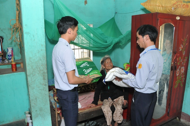 Cùng ngày, đoàn Thiếu Nam đã vận động các nhà hảo tâm và xin được ba phần quà trao tặng cho các gia đình có hoàn cảnh khó khăn, mỗi phần quà trị giá 150.000đ.