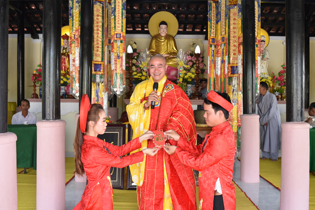 Đại đức chứng minh tặng quà chúc phúc đến đôi bạn trẻ
