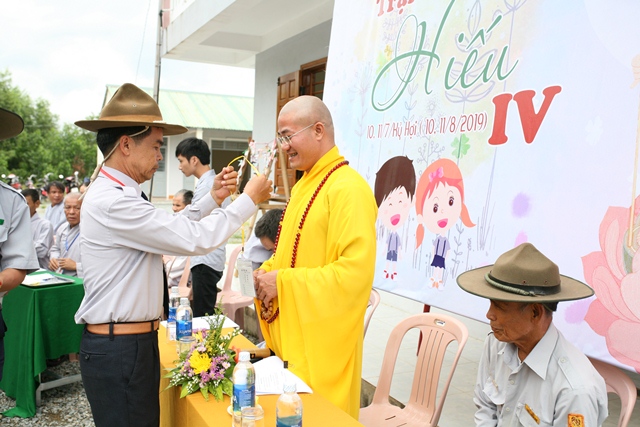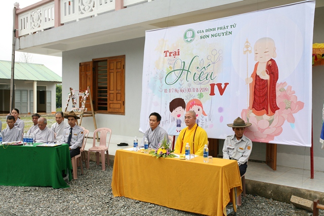 Tại buổi lễ khai mạc, Đại đức Thích Tâm Phương, Trưởng Ban Trị sự đã ban đạo từ đến các em Oanh vũ cùng Ban Quản trại Trại Hiếu - 2019. Đại đức nhấn mạnh 3 điều luật của Oanh Vũ, điều thứ 2 đó là “Em Kính mến cha mẹ và thuận thảo với anh chị em”, đồng thời Đại đức trích dẫn lời bác sĩ Tâm Minh - Lê Đình Thám đã phát biểu hơn 80 năm qua trong kỳ Đại hội đồng của Tổng hội ANPH tại Huế ngày 14 tháng 8 năm 1938: “Không có thành tựu bền vững nào lại không nhắm tới hàng ngũ Thanh Thiếu niên. Họ là những người tiếp nối chúng ta trong ngày mai…”. Một câu nói xuất phát từ suy nghĩ sâu xa và có tầm nhìn chiến lược mà sau đó đã hình thành các tổ chức giáo dục Thanh Thiếu niên Phật tử.