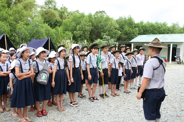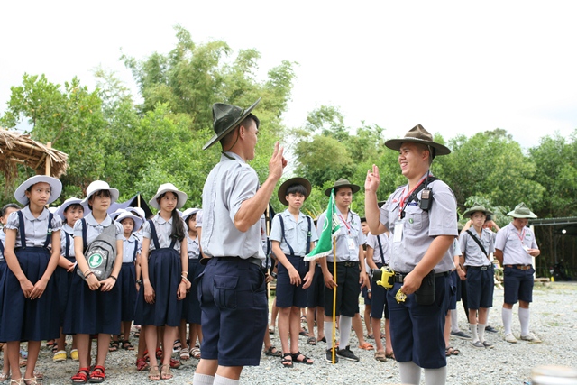 Trại trưởng trao còi lệnh đến tổ Đời sống trại