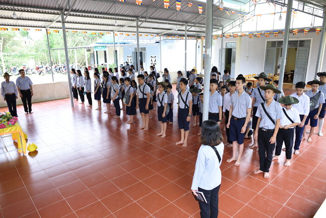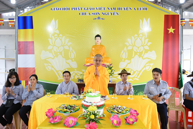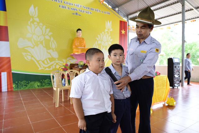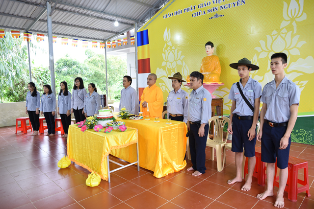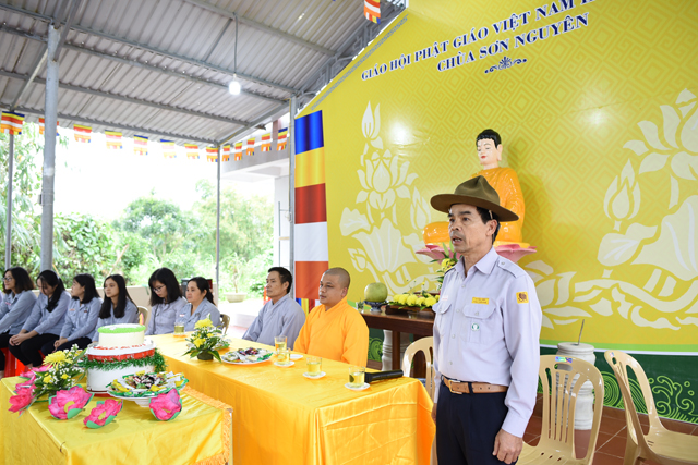 Chứng minh cho buổi lễ có Đại đức Thích Thiền Ngộ, Phó Ban HDPT GHPVGVN huyện A Lưới, Trú trì Niệm Phật đường Sơn Nguyên; Bác Quảng Thọ - Lê Khôi, trưởng Ban Hộ tự Niệm Phật đường Sơn Nguyên, cùng quý anh chị em Huynh trưởng và Đoàn sinh tham dự đông đủ.