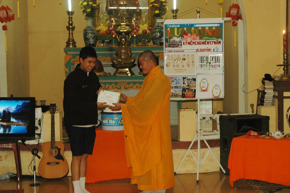 Đại đức Thích Tâm Phương tặng quà chúc mừng Đoàn Thiếu Nam