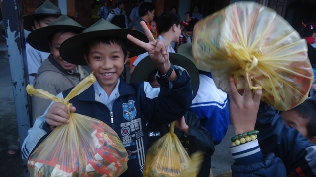 Sau lễ trao cờ luân lưu là chia sẻ những phần quà do Ban Trị Sự GHPGVN Huyện A Lưới trao tặng. Những phần quà đã được chia đều thành nhiều phần cho các em Oanh Vũ có hoàn cảnh khó khăn. Các em Oanh Vũ đã được tặng những phần qua tuy nhỏ nhưng đó là tình cảm của chư Tôn đức dành cho các em, các em đã biết thế nào là tinh thần lục hòa. Giúp các em hòa đồng, biết san sẻ trong GĐPT nói riêng và xã hội nói chung.