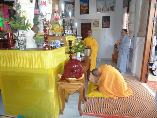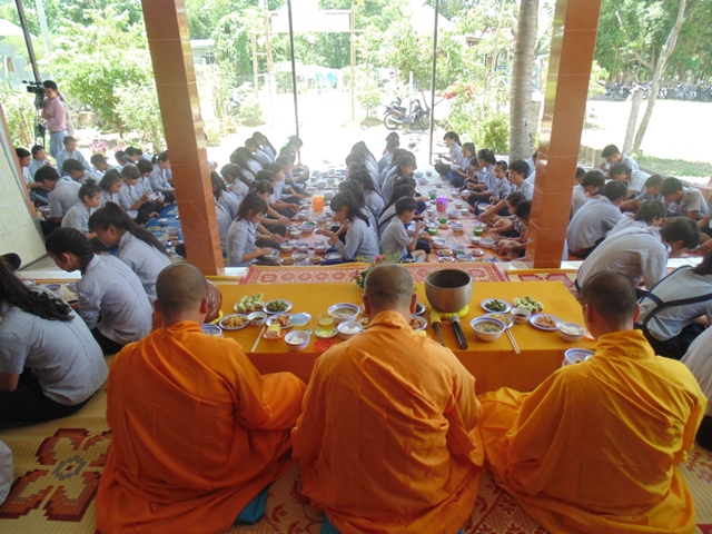 Sau hơn 1giờ đồng hồ thuyết giảng. Thượng tọa cùng chư chư Tăng và quý bác trong Ban Hộ tự Niệm Phật đường Sơn Nguyên và toàn thể Huynh trưởng và đoàn sinh trong GĐPT huyện A Lưới thực hành nghi thức quá đường.