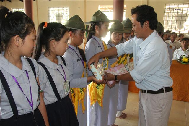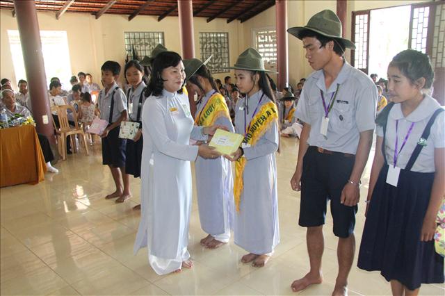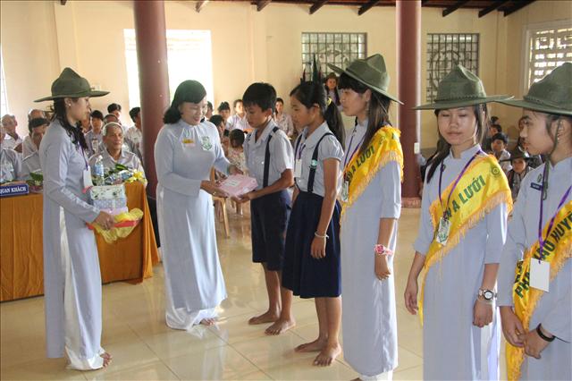 - Ngoài việc hướng dẫn các em tu học còn động viên các em tích cực trong học tập văn hóa bằng nhiều hình thức khác nhau như: Lồng ghép trong các bài học Phật pháp những nội dung nhằm khơi gợi lên vai trò trách nhiệm của một người Phật tử với việc học văn hóa, trao giải thưởng cho những em có thành tích xuất sắc trong học tập. Với những việc làm thiết thực có ý nghĩa nên trong những năm qua, đã có nhiều đoàn sinh đỗ vào đại học như các em: Trần Thị Lạng, Hồ Thị Mỹ Nhung, Nguyễn Hải Giang, Trương Xuân Hải, Văn Thị Thúy Nga, Nguyễn Thị Vui, Nguyễn Thị Mộng Lành… Bên cạnh các đoàn sinh đỗ đại học thì vẫn còn nhiều em đạt thành tích cao trong học tập như em: Nguyễn Thị Thùy Dung giải khuyến khích môn văn cấp tỉnh và em đã thi đỗ vào trường chuyên của Đại học Khoa Học Huế, em Hồ Thị Trang, Phan Thị Nhàn đạt giải nhất môn toán cấp huyện, em nguyễn Thị Thu Lai đạt giải nhì môn Hóa cấp huyện... Còn nhiều em đạt 9 năm liền là học sinh giỏi từ cấp I đến cấp II. Nhìn chung, khoảng trong 10 năm trở lại thì tỉ lệ đoàn sinh đạt khá và giỏi hàng năm của GĐPT chúng con luôn có tỷ lệ khá cao.