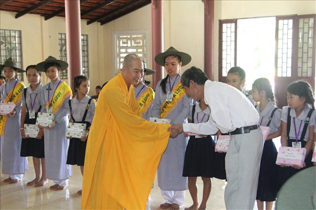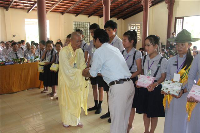 Trước thâm ân cao quý ấy, chúng con thành kính cảm niệm tri ân chư Tôn đức đã không quản gian lao khó nhọc ,đường xá xa xôi, vì lòng thương tưởng đối với những người con thơ dại mà quý Ngài đã quang lâm về đây để chứng minh cho buổi lễ, sự hiện thân của quý Ngài là một niềm vinh dự và phước báo lớn lao để cho hàng Phật tử chúng con trên bước đường tu học và hành thiện.