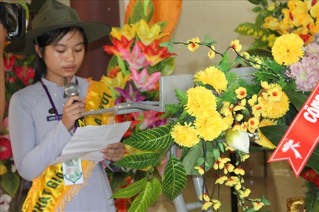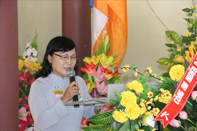 Huynh trưởng Cấp Tấn: Tâm Ngọc - Nguyễn Thị Minh Nguyệt thay mặt Phân Ban GĐPT tỉnh Thừa Thiên Huế phát biểu chúc mừng