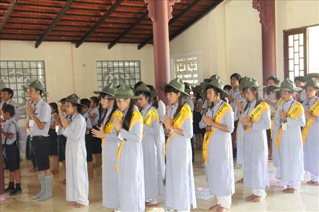 - Nhằm giúp các em phát tâm tu hành Ban Huynh trưởng đã tổ chức khóa tụng kinh Pháp hoa cho Huynh trưởng và đoàn sinh, tổ chức niệm Phật cầu nguyện cho các hương hồn tại nghĩa trang xã Sơn Thủy được vãng sanh, quyên góp giúp đỡ bạn nghèo gặp khó khăn trong cuộc sống...