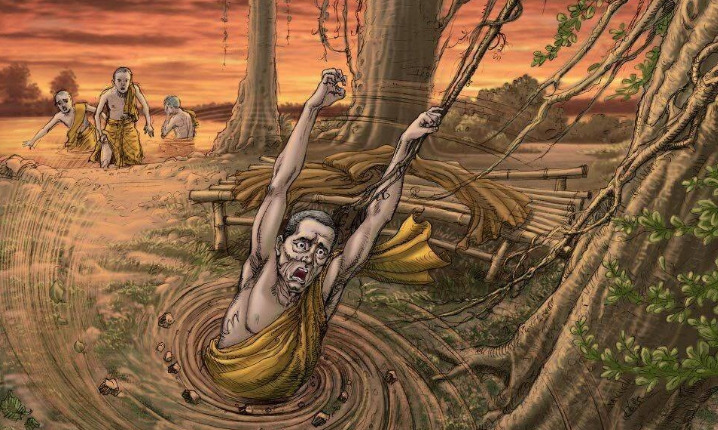 Giống như bệnh nhân được bác sĩ khuyên nên về nhà để lo hậu sự. Đề-bà-đạt-đa đã phạm tội cực ác, mất hết thiện căn công đức nên không cứu được. Nếu pháp trắng thiện lành còn chút ít, dầu nhỏ như sợi lông cọng tóc cũng còn chút hy vọng phục hồi. Đức Phật dùng hình ảnh minh họa thật thảm thương, gây chấn động mạnh. Như người bị lọt vào hố phân, chìm xuống tận đáy, muốn giúp người ấy nhưng không còn chỗ sạch để nắm mà kéo lên.