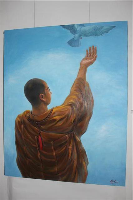 Họa sĩ đã chia sẻ về chủ đề “Tâm lành” Tôi luôn mong muốn cuộc sống này được an bình để giữ gìn và phát huy những giá trị tốt đẹp nhất mà loài người đã gây dựng nên bất lâu nay. Dòng chảy của sự sống đnag tuôn trào và tràn trề năng lượng, luôn hấp dẫn và lôi cuốn chúng ta….Tác giả chọn đề tài Phật giáo để thể hiện và chuyển tải những điều đó vào trong các tác phẩm như là một ẩn ý nhằm hướng tới những điều tốt đẹp nhân văn và hướng tới cái “thiện”.