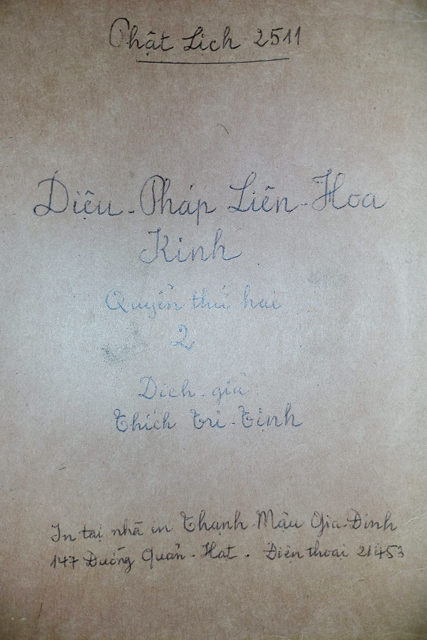 Đặt biệt hơn cả, công hạnh chép kinh của ông đã in sâu vào tâm khảm của các thế hệ Tăng ni, thiện tín Long Thơ nói riêng, Phật giáo Đà Nẵng nói chung. Bắt đầu từ những năm 80, vào thời kỳ bao cấp, kinh tế còn khó khăn, ông đã cố gắng dành dụm những đồng tiền ít ỏi của mình để mua những quyển tập phục vụ hạnh nguyện chép kinh của mình. Hầu như các bộ kinh cốt yếu, các bộ luận hay sách nghiên cứu của Phật giáo ông đều lần lượt biên chép một cách cẩn trọng. Sau khi chép xong, ông dùng chính kinh sách mình chép trì tụng trong các thời khóa hằng ngày. Ngay lúc trì tụng, ông luôn không rời hai loại bút đỏ và bút chì, nếu trì đến đâu chỗ nào khiếm khuyết hay sai ông sẽ ký hiệu vào và biên chép, chỉnh túc lại. Điển hình như các bộ kinh: