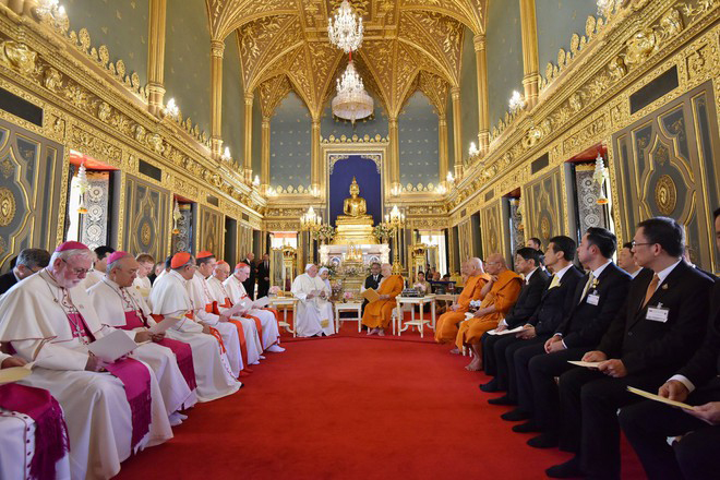 Phát biểu trước các đại diện tổ chức dân sự, các quan chức và các nhà ngoại giao, Giáo hoàng Francis nhấn mạnh việc thăm Đức Tăng thống Phật giáo Thái Lan cho thấy "tầm quan trọng và sự cấp bách của việc thúc đẩy tình hữu nghị và đối thoại giữa các tôn giáo", Thông tấn xã Việt Nam cho biết trong bản tin vào đầu giờ chiều ngày 21-11.