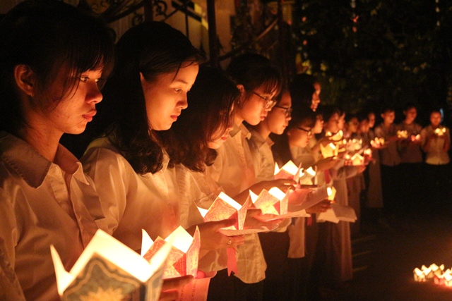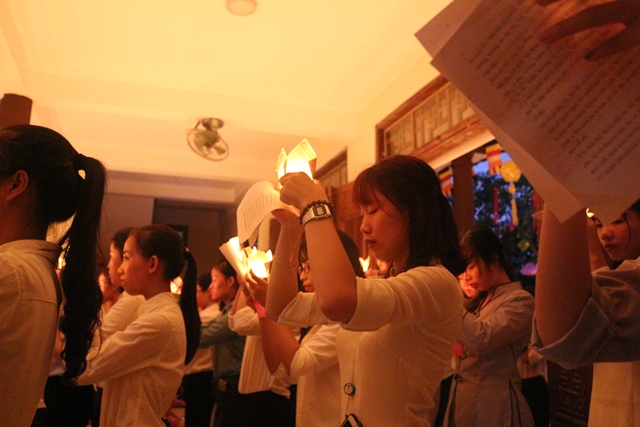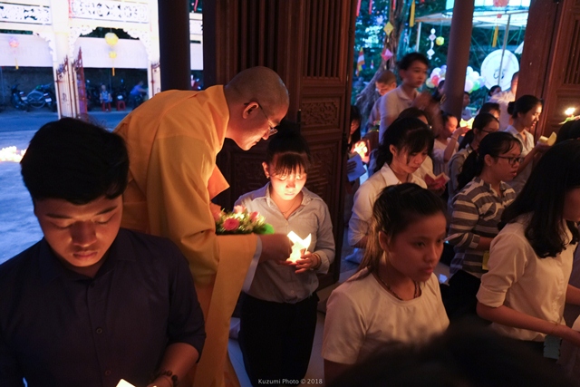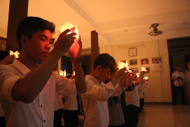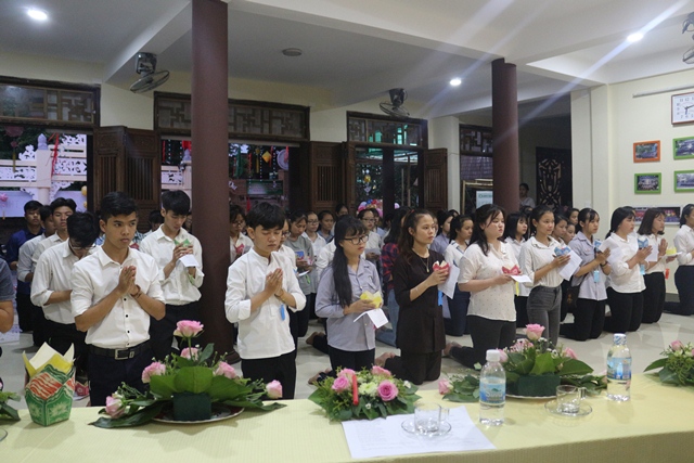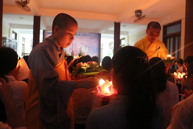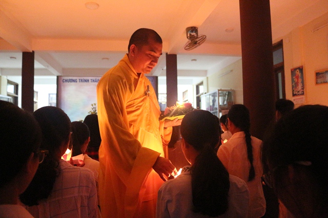 Sau phần phát biểu cảm tạ của Ban Tổ Chức, chương trình được tiếp nối với nghi lễ cầu nguyện và truyền đăng, trong ánh nến lung linh của ánh sáng giác ngộ, ánh sáng của trí tuệ và tình thương, tất cả các em học sinh lớp 12 đã cùng nguyện cầu theo sự hướng dẫn của Đại Đức Thích Tâm Phương.