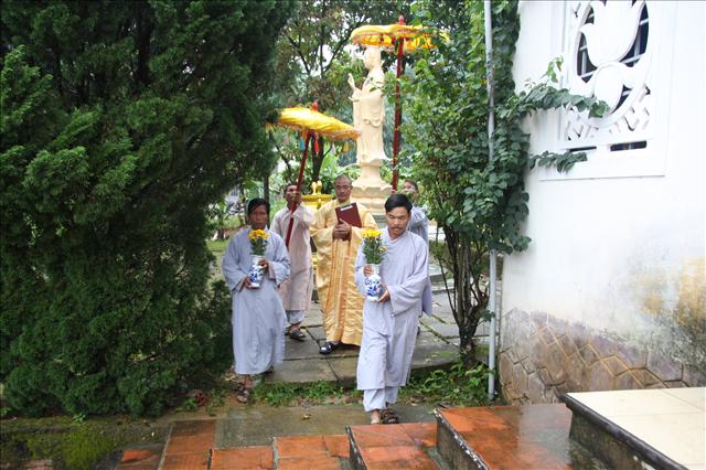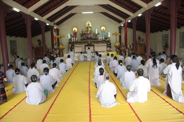 08 giờ 45, Ban nghi lễ cung thỉnh Đại đức Thích Tâm Phương, Trưởng Ban Trị sự GHPGVN huyện A Lưới quang lâm đạo tràng niêm hương bạch Phật và truyền giới Bát Quan trai. Đại đức đã nhấn mạnh về sự lợi của việc tu tập một ngày rất cụ thể.