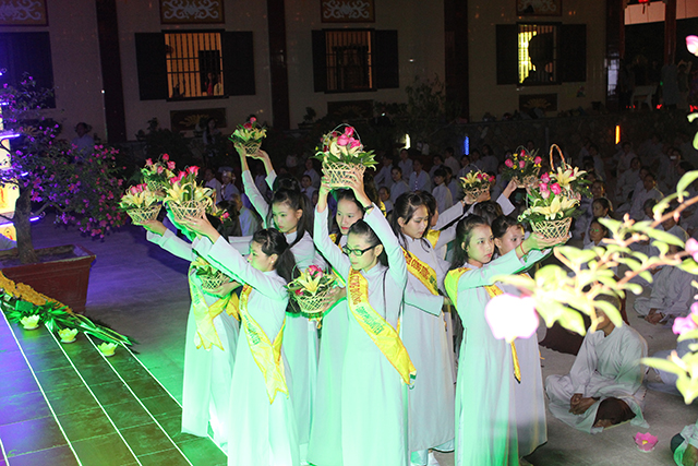 19h Lễ hội hoa đăng được tiến hành với hơn 500 phật tử của địa phương tham dự.