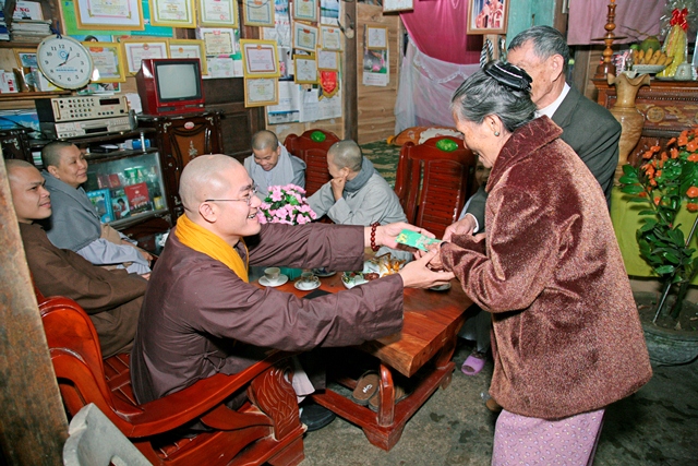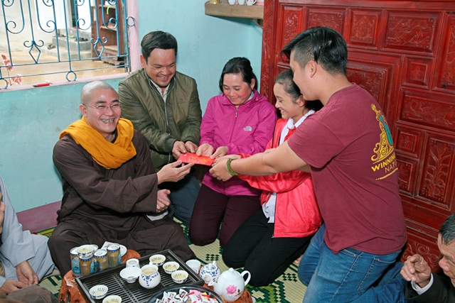 Tại các gia đình đến thăm, Đại đức Trưởng BTS cùng chư Tôn đức đã thắp hương cầu nguyện, có lời tán thán tinh thần phụng sự của quý Đạo hữu trong những năm qua, đồng thời chúc Xuân đến quý Đạo hữu cùng gia quyến trong năm mới Đinh Dậu này càng nổ lực tinh tấn hơn nữa trong sự tu tập của bản thân và Phật sự chung của BTS GHPGVN huyện A Lưới.