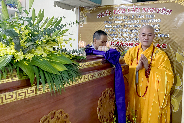 Chiều ngày 29/9, Ban Trị sự GHPGVN huyện A Lưới do Đại đức Thích Tâm Phương, UV BTS GHPGVN tỉnh Thừa Thiên Huế, Trưởng Ban Trị sự GHPGVN huyện A Lưới đã về tại Vức 91, Thị trấn A Lưới, huyện A Lưới để kính viếng Tang lễ Cố Phật tử Lê Tấn Thọ - Pháp danh: Quảng Trường.