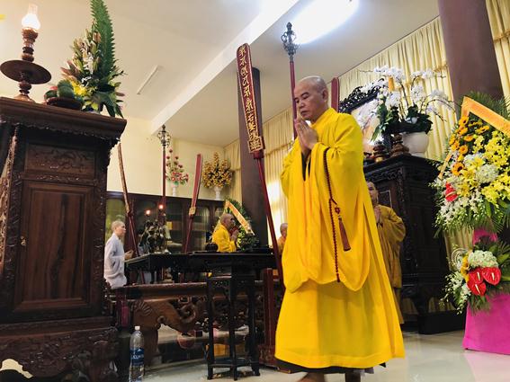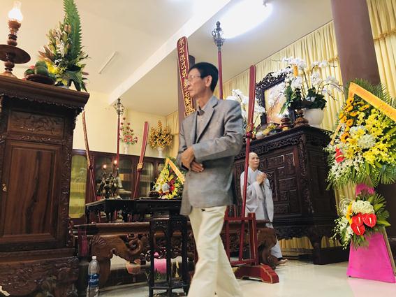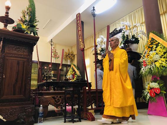 Thượng tọa Thích Thanh Quyết, Phó Chủ tịch HĐTS, Trưởng ban GDPG TƯ dâng hương tưởng niệm đảnh lễ trước Giác linh đường Cố Trưởng lão Hòa thượng Phó Pháp chủ.