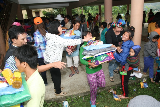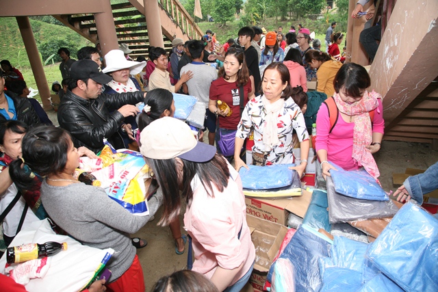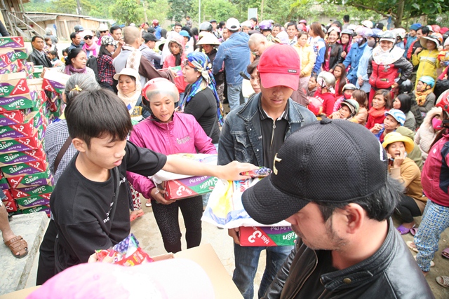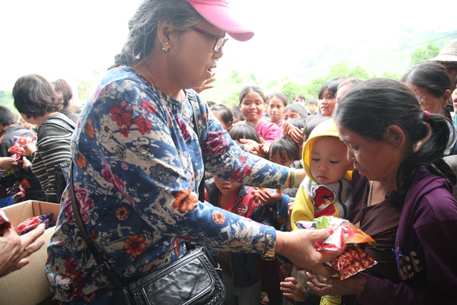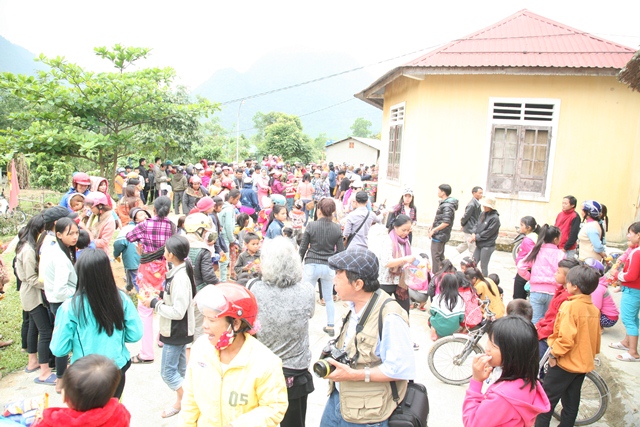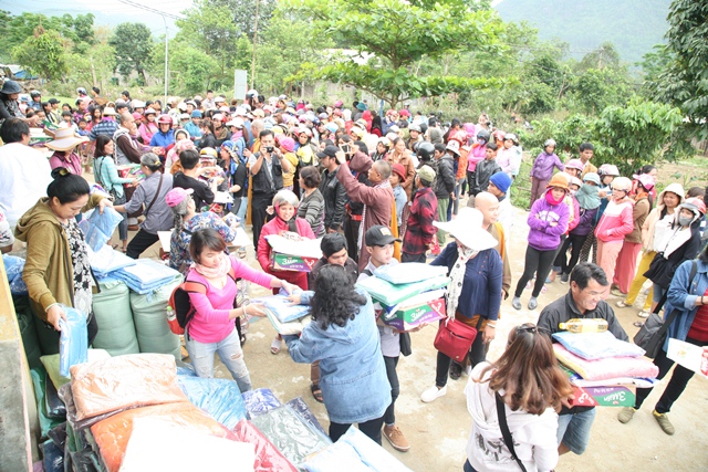 Điểm thứ 2 phái đoàn trao tặng 250 phần quà tại thôn A Năm, xã Hồng Vân, huyện A Lưới.