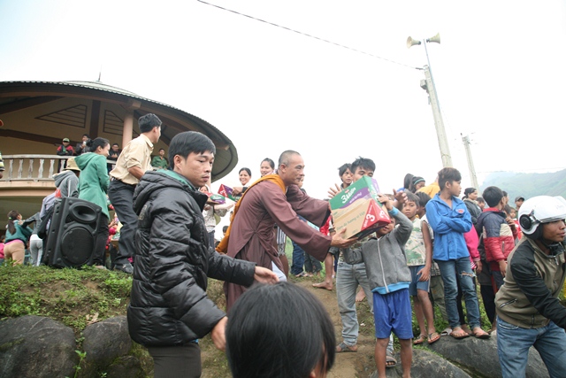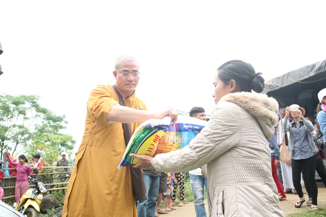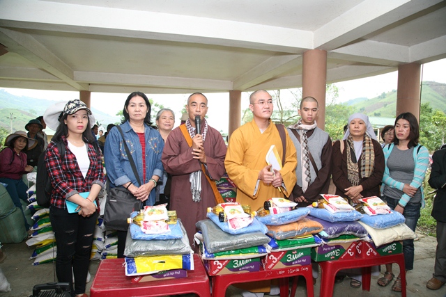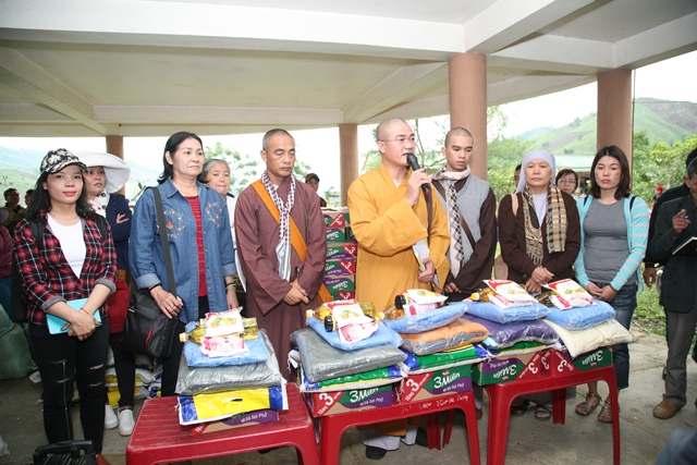 Tai buổi phát quà, Đại đức Thích Thiện Quý, Trưởng Ban TT XH GHPGVN tỉnh Đồng Tháp, Trưởng BTS GHPGVN huyện Tam Nông phát biểu tri ân đến chư Tôn đức BTS GHPGVN huyện A Lưới đã giúp đỡ mọi mặt cho phái đoàn từ vùng đồng bằng sông nước miền Tây có dịp về thăm và làm việc tại vùng cao A Lưới để thực hiện chương trình thiện nguyện thiết thực ý nghĩa như thế này