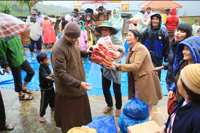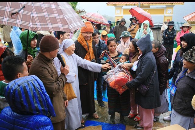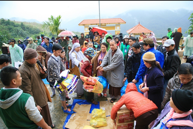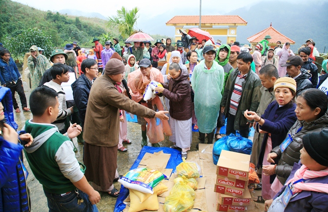 Với ý nghĩa đó, sáng ngày 17.01.2015 (27/11 Giáp Ngọ) Ban Trị sự GHPGVN huyện A Lưới phối hợp phái đoàn Từ thiện chùa Bửu Nghiêm (Đà Nẵng) đến ủy lạo các gia đình dân tộc thiểu số có hoàn cảnh khó khăn tại 2 bản A Rốc, A Bả thuộc huyện KLùm, tỉnh Sê Kông, nước CHDCND Lào.