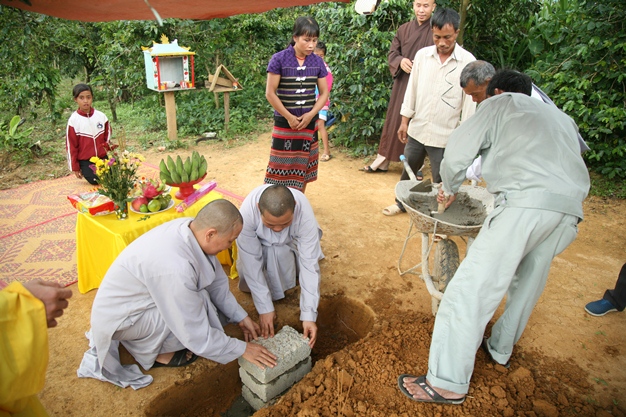 Đại đức Thích Tâm Phương, Trưởng Ban Trị sự GHPGVN huyện A Lưới; Đại đức Thích Tín Nhơn, Phó Ban Thường trực Ban Trị sự, Ni sư Thích Nữ Diệu Trung, Phó Trưởng Ban Trị sự, Sư cô Thích Nữ Thuần Tánh, Ủy viên Ban Trị sự đã đến đặt đá khởi công xây dựng đến gia đình người đồng bào dân tộc thiểu số có hoàn cảnh khó khăn của Bà Hồ Thị Dâu (Bưa), sinh năm: 1974, hộ khẩu thường trú tại Thôn Tà Kêu, xã Nhâm, huyện A Lưới.