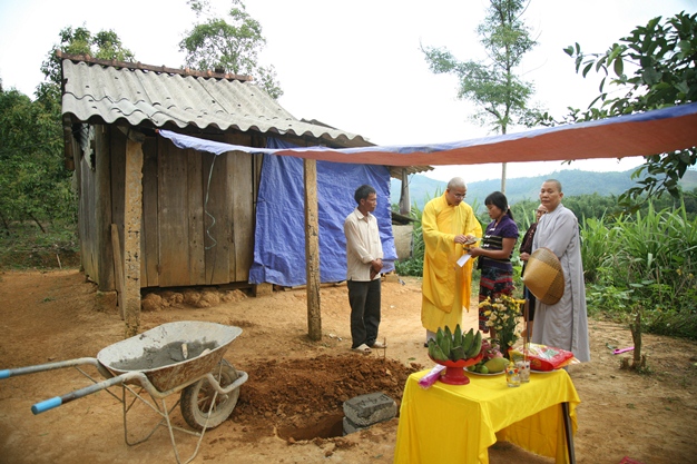 Tại đây, Đại đức Trưởng Ban Trị sự đã thay mặt các nhà hảo tâm trao một nửa số tiền để mua vật liệu xây dựng, nửa số tiền còn lại sẽ bàn giao sau khi công trình gần hoàn tất. Đồng thời Đại đức dặn dò gia đình kêu gọi ngày công để tiết kiệm với số tiền công thợ để cho ngôi nhà được khang trang ổn định được đời sống an cư lạc nghiệp.