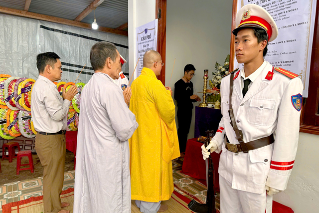 Đại đức Thích Tâm Phương đã thắp hương nhất tâm cầu nguyện Hương linh Thiếu tá được thác sanh về cảnh giới an lành, đồng thời đã có lời chia buồn sâu sắc đến chị Lê Thị Thu Hương và toàn thể gia đình.