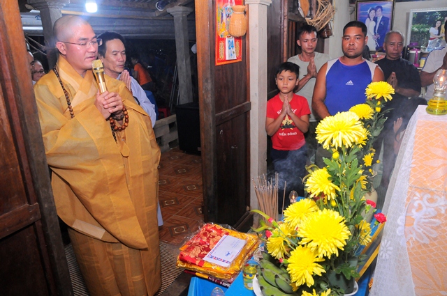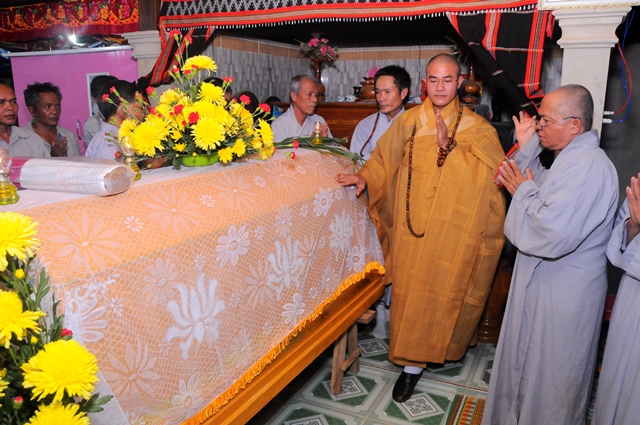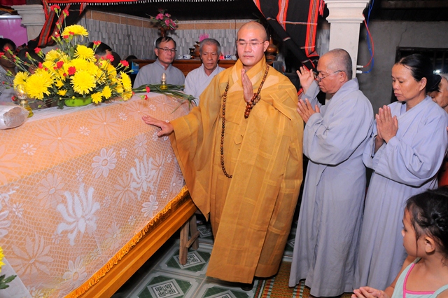 Đại đức Thích Tâm Phương thắp hương cầu nguyện trước linh cửu