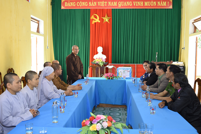Sáng ngày 17-01, ĐĐ. Thích Tâm Phương, UV BTS GHPGVN tỉnh Thừa Thiên Huế, Trưởng BTS GHPGVN huyện A Lưới làm Trưởng phái đoàn cùng ĐĐ. Thích Thích Tín Nhơn, Phó Trưởng Ban Thường trực Ban Trị sự; NS. Thích Nữ Diệu Trung, Phó Trưởng BTS; ĐĐ. Thích Thiền Nguyện, Phó Thư ký BTS, Trưởng Ban HDPT; ĐĐ. Thích Thiền Ngộ, Phó Trưởng Ban HDPT; SC. Thích Nữ Liên Trí, Trưởng Ban Văn hóa; SC. Thích Nữ Thuần Tánh, UV BTS; Cư sĩ Lê Văn Hoàng, Phó Thư ký BTS, Trưởng Ban TT TT, cùng quý Cư sĩ Ủy viên BTS, Ban Hộ tự các Niệm Phật đường đã đến thăm, chúc Tết lãnh đạo Huyện ủy huyện A Lưới, UBND, UBMT TQVN, Phòng Nội vụ, Công an huyện A Lưới, thị trấn và xã Sơn Thủy.