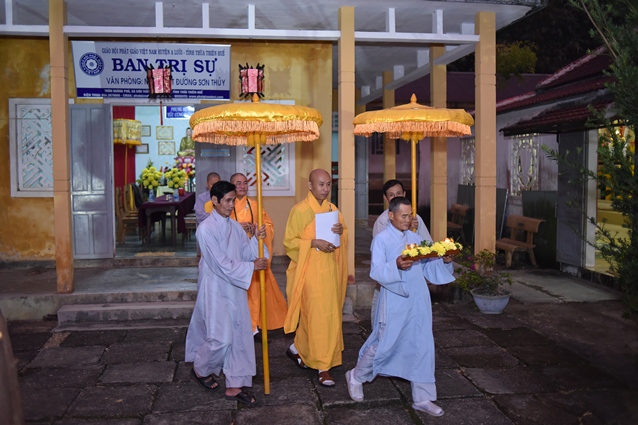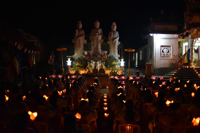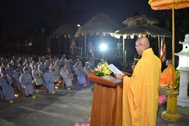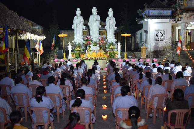 Nến đã thắp, hương đã chong, tín nguyện chuyên cần, tâm thành đã sẵn, xin thay mặt Ban Trị sự, chúng tôi xin trân trọng tuyên bố khai mạc lễ hội hoa đăng “Pháp hội Di Đà năm Kỷ Hợi”
