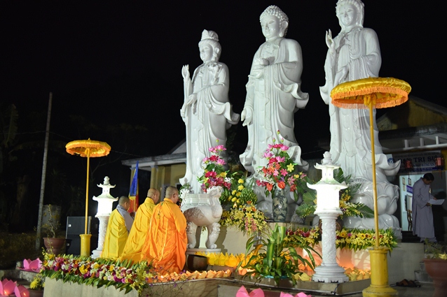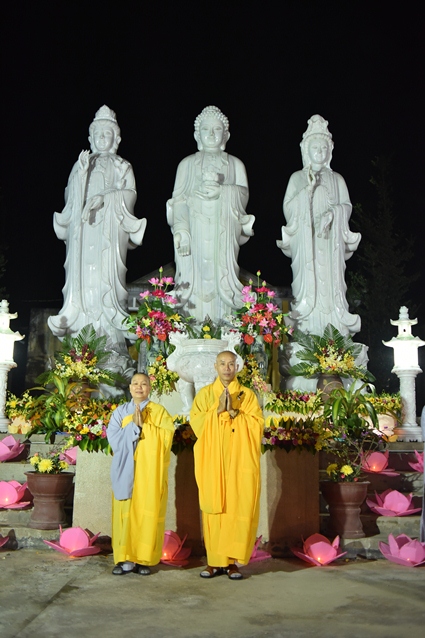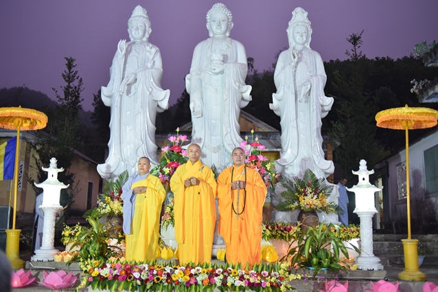 Nhân kỷ niệm ngày vía Đức Phật A Di Đà tối ngày 17.11 Kỷ Hợi, tại Bảo tượng Tây phương tam thánh Niệm Phật đường Sơn Thủy, Ban Trị sự GHPGVN huyện A Lưới trang nghiêm tổ chức Lễ Vía của Ngài và đêm Liên hoa đăng.